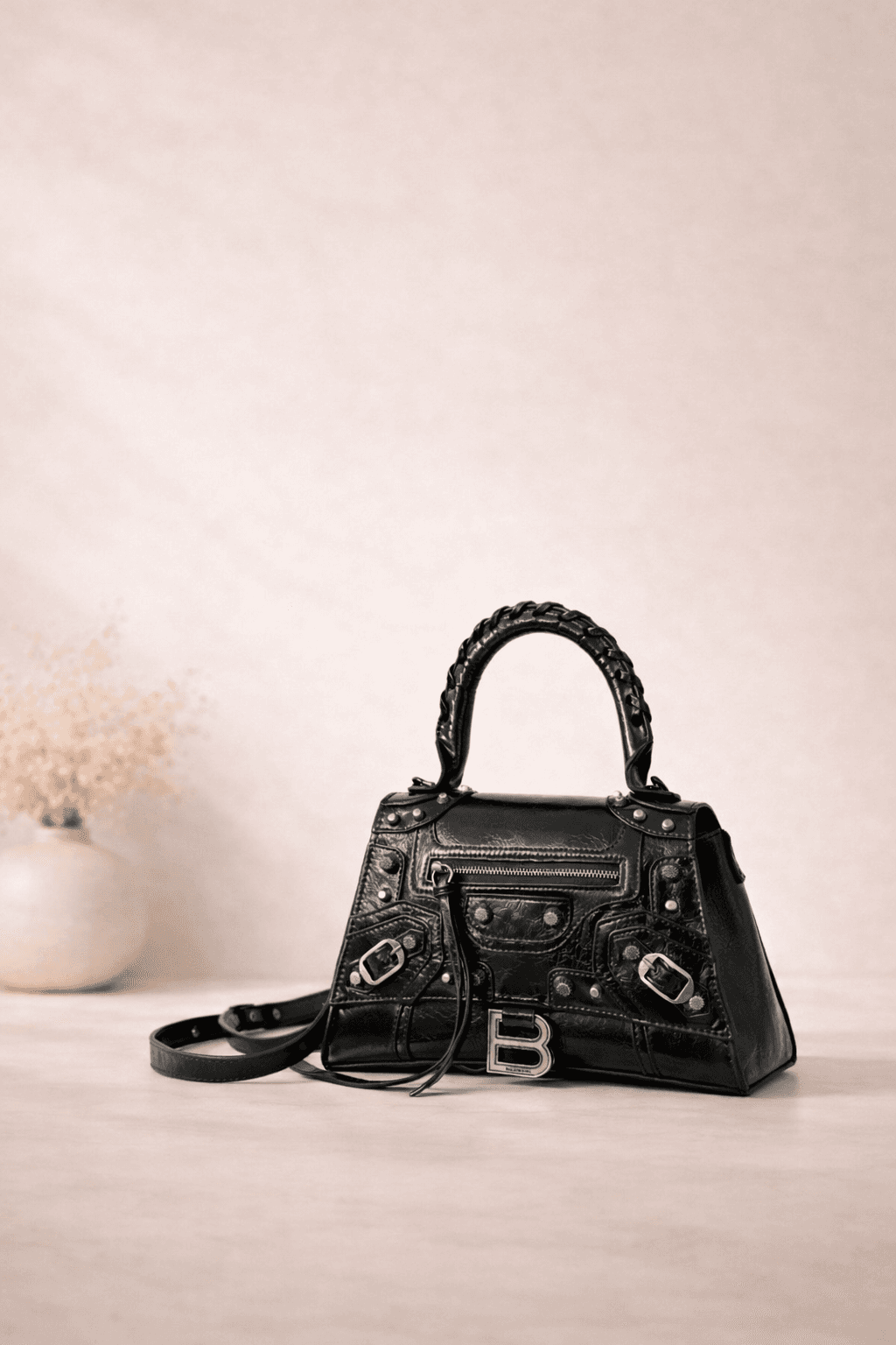 Parlak yüzeyi ve metal detaylarıyla öne çıkan Balenciaga Paris çanta, modern ve iddialı bir stil sunar.